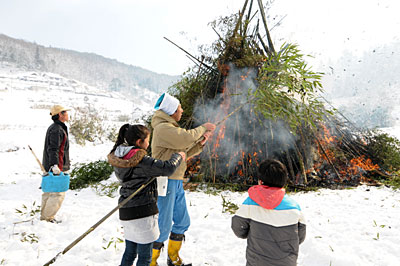 あまりに雪と寒さで、同じ日にとんどを取りやめた地域もありました。 |