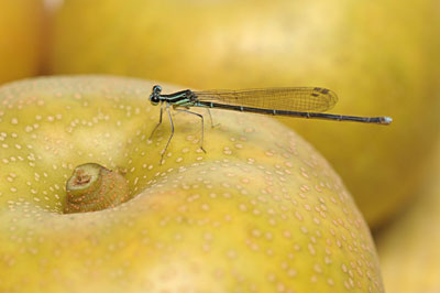 選果中の幸水にイトトンボがとまり、何故かじっと動かなかったので、撮すことが出来ました。