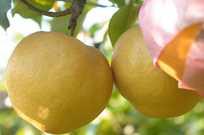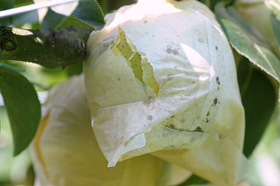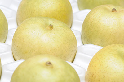 | 今年はゴ−ルド二十世紀の収穫が遅くまで続き、例年よりも収穫が1週間以上遅れましたが、その分甘さは充分のっていました。 |