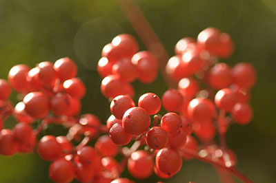晩秋から初冬にかけて、異様に暖かい日が続き山の紅葉も遅れる中、南天の実は綺麗に色づいていました。