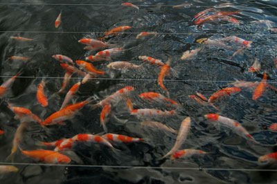 鯉も人になれるみたいで、最初はエサを持って行っても逃げていましたが、最近ではエサを持って行くと集まってきます。